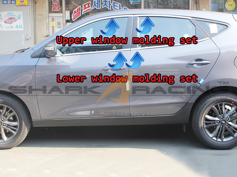 Complete set composed of upper and lower window moldings, and C-pillar moldings.