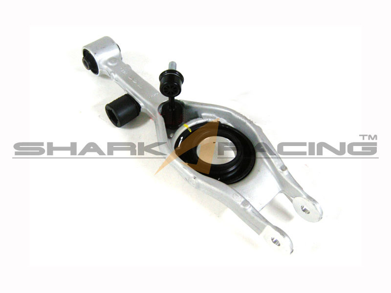 The original rear lower arms are steel, and replacing them with the aluminum units will reduce weight, and the new aluminum lower arms also include active dampers to lower vibration from the road, resulting in a smoother ride.