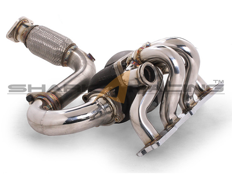 This package includes the TD05-14G turbo, full stainless steel and hand-welded turbo manifold, down pipe, and turbo head gasket that will lower compression ratio to 8.5:1.