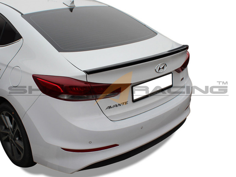 Type-G painted trunk spoiler for the 2017-2018 Elantra sedan and 2017-2018 Elantra Sport, affixes to the rear glass with the supplied 3M adhesive tape.