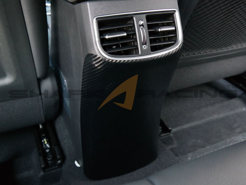 2017+ Elantra and Elantra Sport Console Rear Protector made with Carbon Fiber Style Fabric sticks to the rear of the console car and protects it from scuff marks from rear passengers.