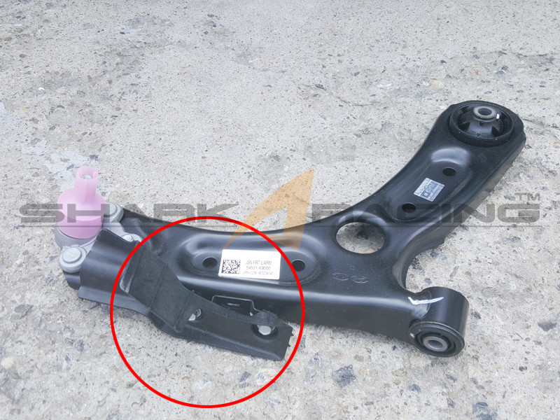 A brake cooling duct has been added to the lower arm that will aid in cooling the brakes by directing air to the brakes. In addition, the bushing has been upgraded to a tougher unit that will provide better resistance to rolling.
