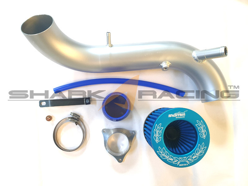 Kit includes a mandrel-bent 3 inch aluminum intake pipe that has been ceramic coated to reduce intake temps, as well as a Korean-made SYSTEM-UPGRADE intake filter.
