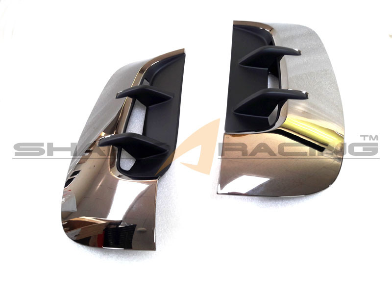 Each order includes left and right moldings that are matte black on the inner vent part, and black chrome in the outer part.