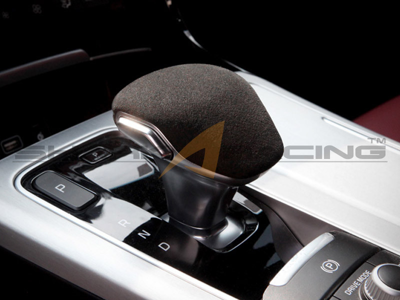 Gear knob upgrade pieces covered with genuine Alcantara leather, made for the 2018+ Stinger, offered as factory options on the 2019 MY Stinger.