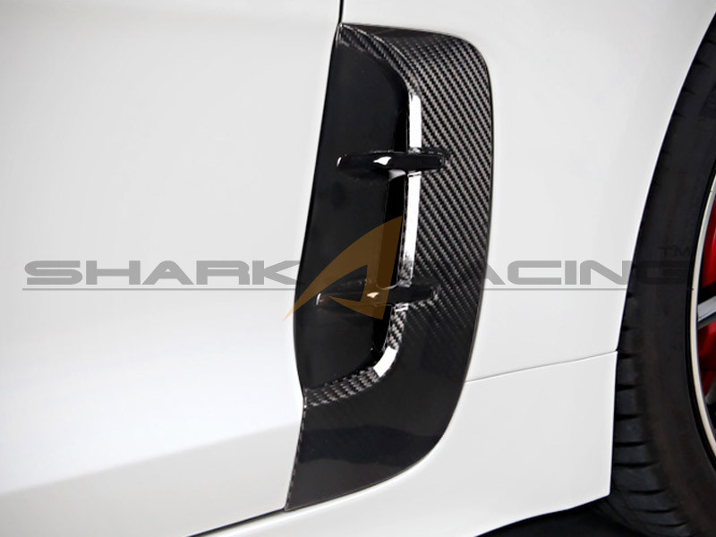 Each order includes left and right factory fender vents that have been overlaid with genuine carbon fiber, and then sprayed with a high quality UV resistant automotive clear coat.