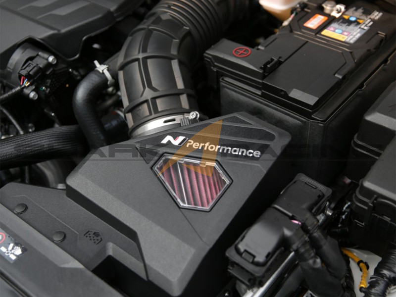 Hyundai Factory Genuine N-Performance Intake set for the 2021+ Elantra N with 2.0 Turbo engine, improves airflow into the turbo, and also lowers the intake temperature for a big boost in power.