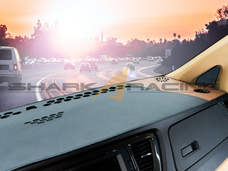 Each set is custom-made to each application, and is made of a high quality artificial leather, with a middle layer of heat-reflecting fabric material, and a bottom layer of non-slip fabric, which will help in lowering the interior temperature during hot summer days, help prevent dashboard sun damage, and absorbs harmful UV rays from being reflected off the dash into your eyes.