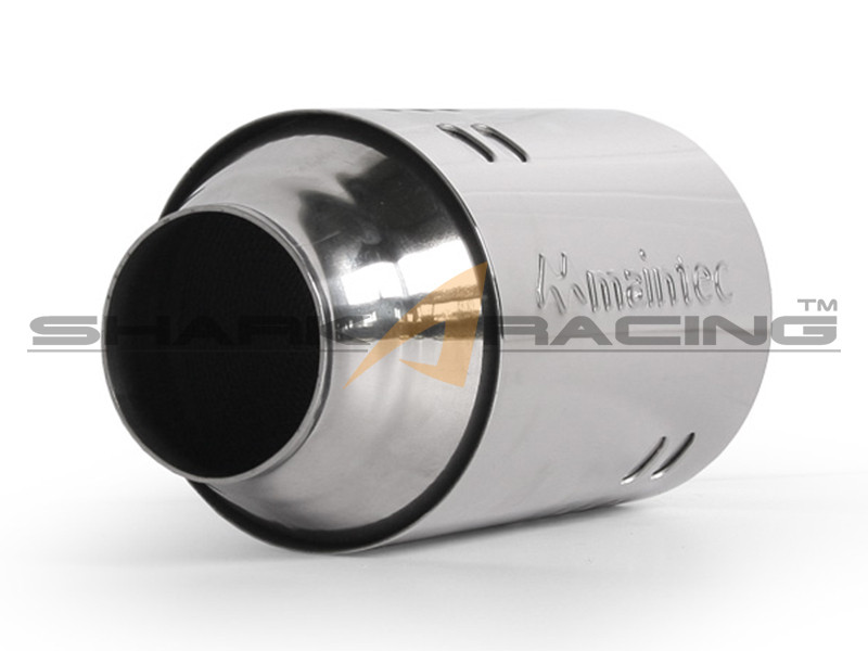 Inlet and outlet will be 63mm (2.5 inches). Total length is about 28.5cm (11.2 inches) long, and diameter of the cat body is about 11.5cm (4.5 inches)